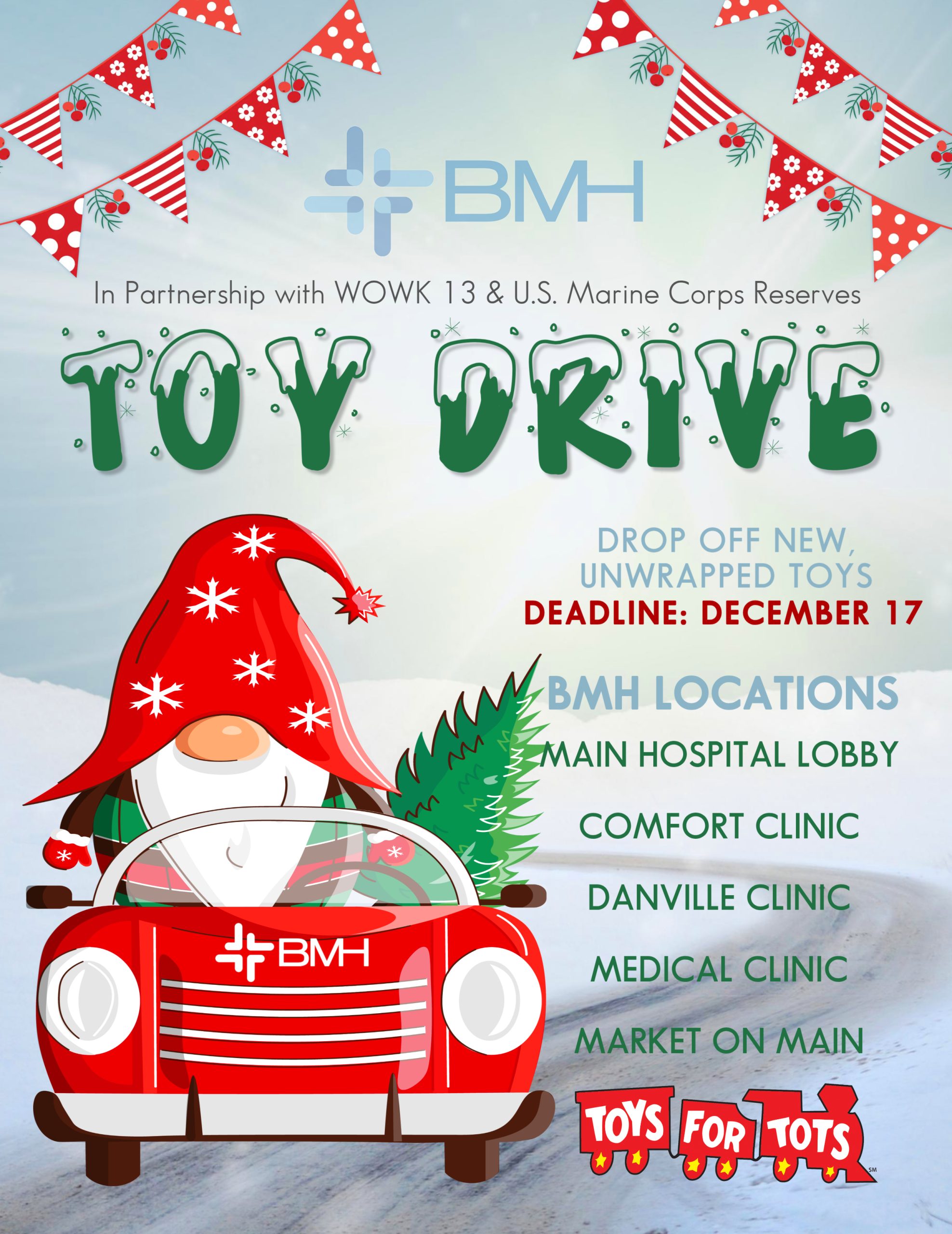 Donate a new, unwrapped toy to brighten a child’s Christmas.